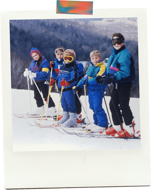 old polaroid photo of kids skiing